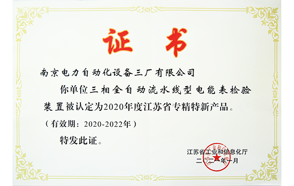 南自三廠專業從事電能表自動化生產及校驗流水線、自動化庫房、電能表現場檢定裝置、電力計量培訓柜、全自動互感器檢定裝置等設備的研發和生產,是中國首批全電子單、三相電能表檢定裝置的生產企業,《中華人民共和國國家標準GB∕T37006-2018數字化電能表檢驗裝置》編制單位,國家高新技術企業、江蘇省民營科技企業。